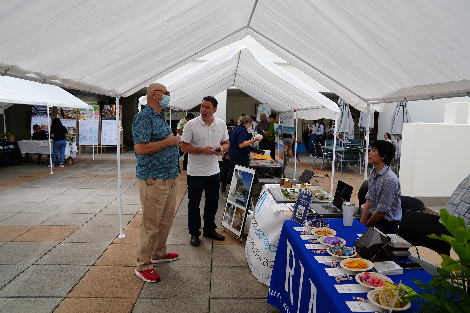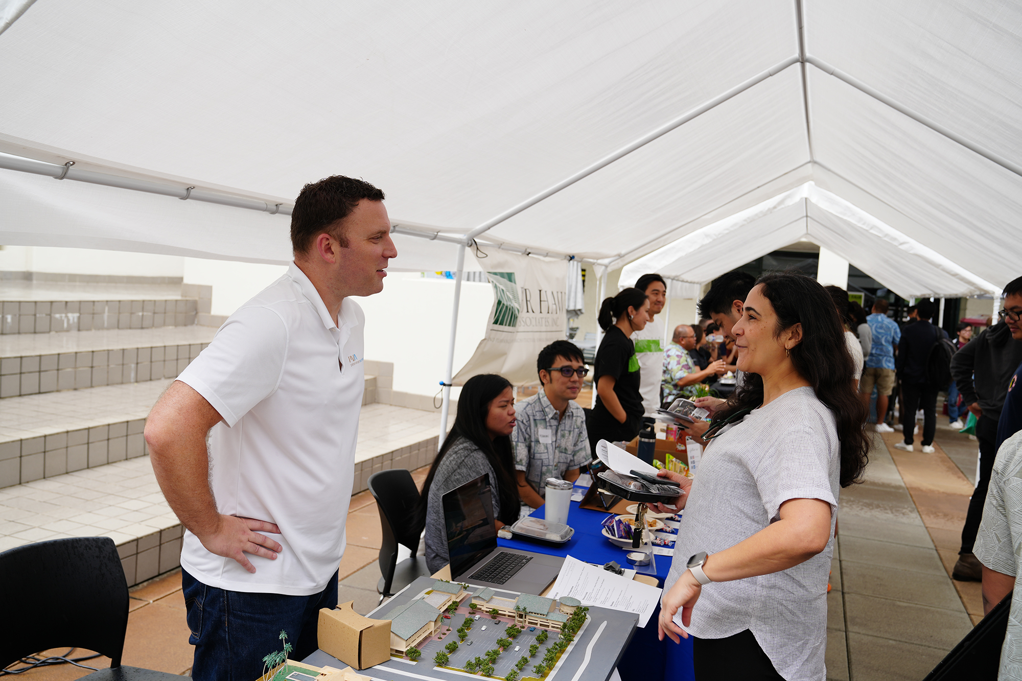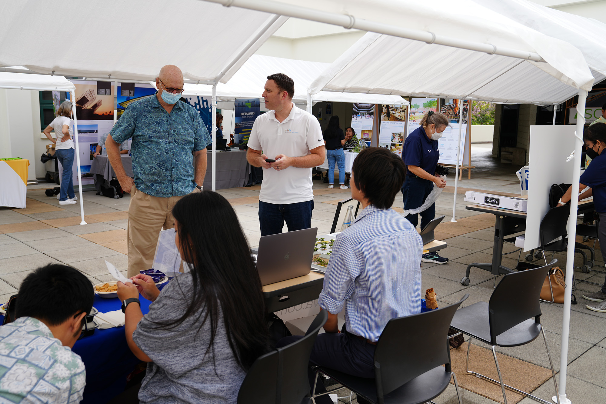 Partner Todd Hassler and Designer Jonathan Quach visited with architecture students at the University of Hawaiʻi at Mānoa School of Architecture Career Fair. Quach graduated from UH with a Doctor of Architecture (D.Arch) degree in 2021 and a Bachelor of Environmental Design in 2018. Together they explained to students about the different areas an architect can work in after graduation. They brought models and VR goggles to show students samples of PVA’s work. They showcased projects and discussed opportunities and challenges that upcoming graduates will face. Overall, it is a wonderful opportunity to connect with future graduates and showcase what they have to look forward to after graduation.