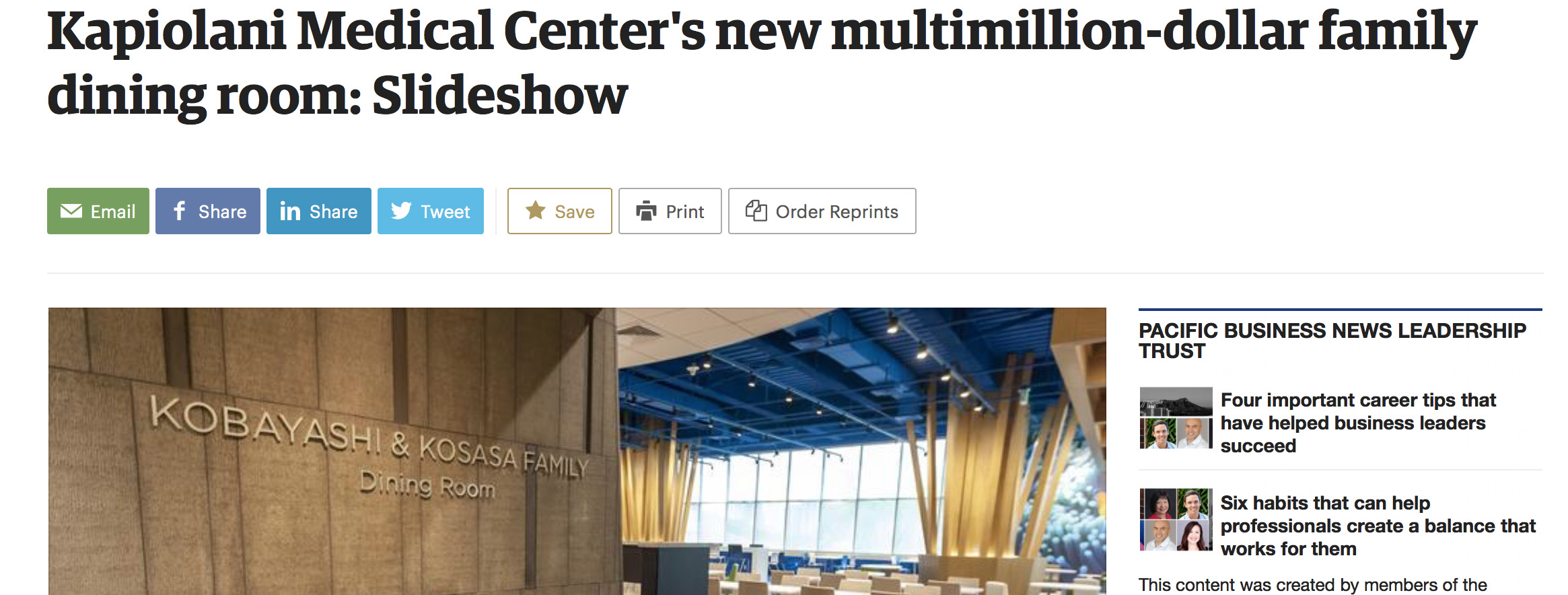 PVA in the NewsPacific Business News: Kapi'olani Medical Center's new multimillion dollar family dining room: Slideshow
